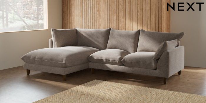 7.2.6 Buy Noa Deep Relaxed Sit Medium Corner Chaise - Left Hand Chunky Chenille Light Dove High Leg - Mid from the Next UK online shop Click here to use our accessible website