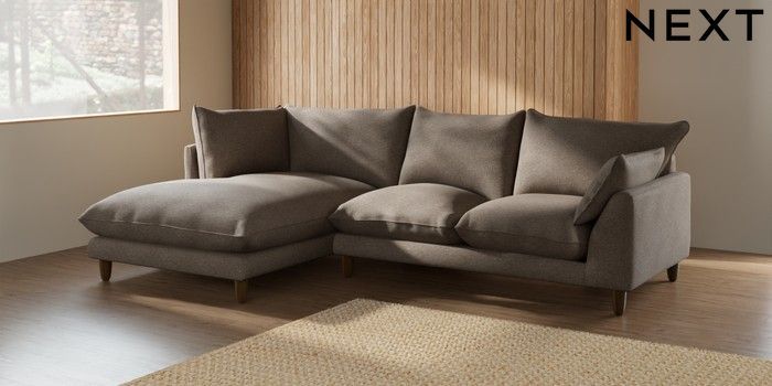7.2.6 Buy Noa Deep Relaxed Sit Medium Corner Chaise - Left Hand Chunky Weave Dark Natural High Leg - Light from the Next UK online shop Click here to use our accessible website