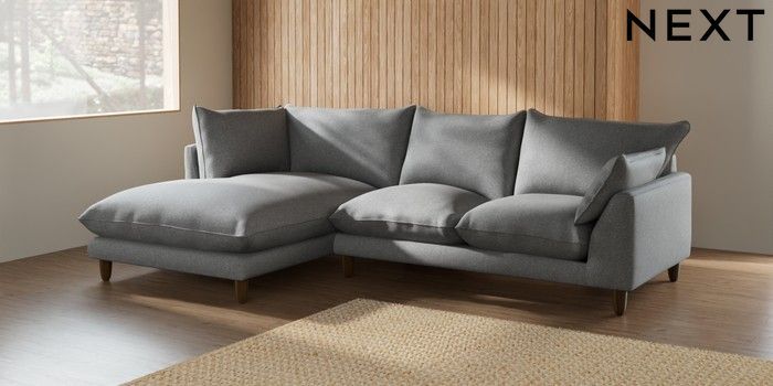 7.2.6 Buy Noa Deep Relaxed Sit Medium Corner Chaise - Left Hand Chunky Weave Mid Grey High Leg - Mid from the Next UK online shop Click here to use our accessible website