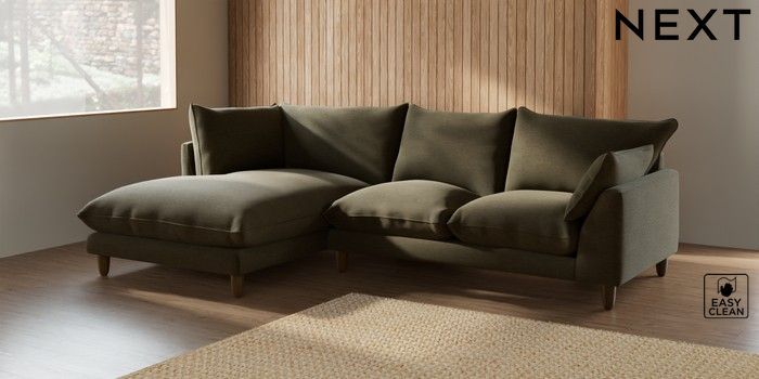 7.2.6 Buy Noa Deep Relaxed Sit Medium Corner Chaise - Left Hand Fine Chenille Easy Clean Dark Moss Green High Leg - Mid from the Next UK online shop Click here to use our accessible website