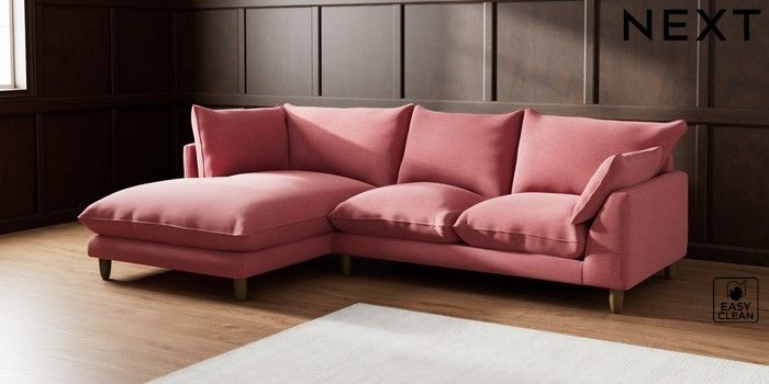 7.2.6 Buy Noa Deep Relaxed Sit Medium Corner Chaise - Left Hand Fine Chenille Easy Clean Mid Pink High Leg - Mid from the Next UK online shop Click here to use our accessible website