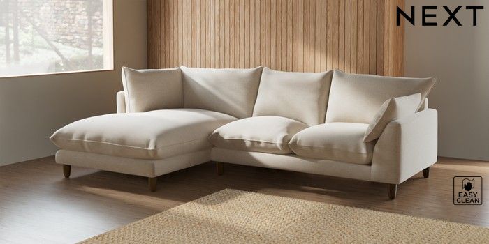 7.2.6 Buy Noa Deep Relaxed Sit Medium Corner Chaise - Left Hand Fine Chenille Easy Clean Oyster High Leg - Mid from the Next UK online shop Click here to use our accessible website