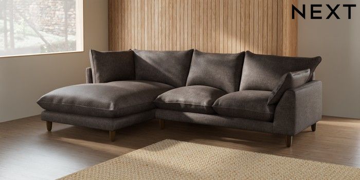 7.2.6 Buy Noa Deep Relaxed Sit Medium Corner Chaise - Left Hand Plush Chenille Mink Brown High Leg - Light from the Next UK online shop Click here to use our accessible website