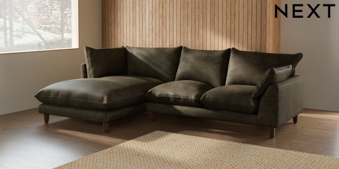 7.2.6 Buy Noa Deep Relaxed Sit Medium Corner Chaise - Left Hand Plush Chenille Moss Green High Leg - Dark from the Next UK online shop Click here to use our accessible website