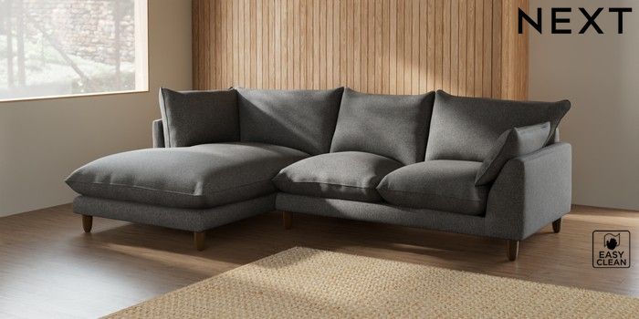 7.2.6 Buy Noa Deep Relaxed Sit Medium Corner Chaise - Left Hand Tweedy Blend Easy Clean Dark Grey High Leg - Light from the Next UK online shop Click here to use our accessible website