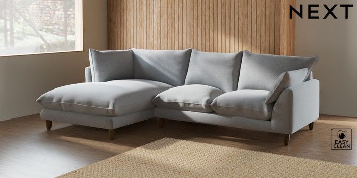 7.2.6 Buy Noa Deep Relaxed Sit Medium Corner Chaise - Left Hand Tweedy Blend Easy Clean Light Silver Grey High Leg - Mid from the Next UK online shop Click here to use our accessible website