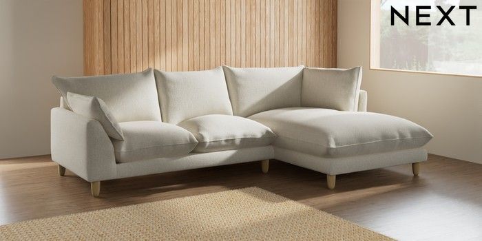 7.2.6 Buy Noa Deep Relaxed Sit Medium Corner Chaise - Right Hand Chunky Texture Oyster High Leg - Light from the Next UK online shop Click here to use our accessible website