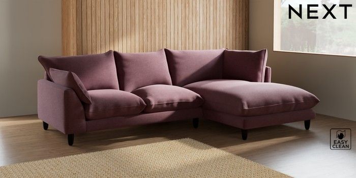 7.2.6 Buy Noa Deep Relaxed Sit Medium Corner Chaise - Right Hand Fine Chenille Easy Clean Mid Mulberry Purple High Leg - Dark from the Next UK online shop Click here to use our accessible website