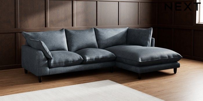7.2.6 Buy Noa Deep Relaxed Sit Medium Corner Chaise - Right Hand Plush Chenille Slate Blue High Leg - Dark from the Next UK online shop Click here to use our accessible website