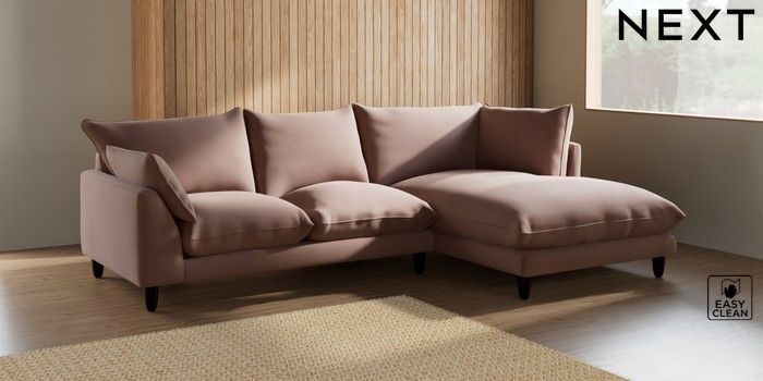 7.2.6 Buy Noa Deep Relaxed Sit Medium Corner Chaise - Right Hand Plush Velvet Easy Clean Mid Natural High Leg - Dark from the Next UK online shop Click here to use our accessible website