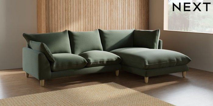 7.2.6 Buy Noa Deep Relaxed Sit Medium Corner Chaise - Right Hand Relaxed Linen Look Dark Green High Leg - Light from the Next UK online shop Click here to use our accessible website