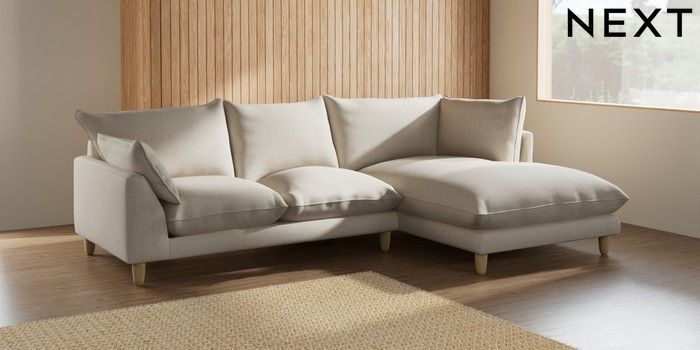 7.2.6 Buy Noa Deep Relaxed Sit Medium Corner Chaise - Right Hand Tweedy Chenille Oyster High Leg - Light from the Next UK online shop Click here to use our accessible website