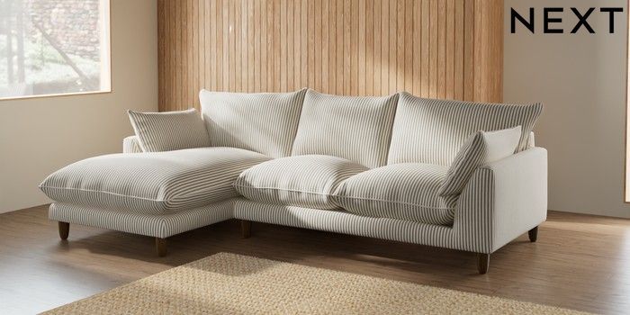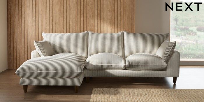 7.3.1 Buy Noa Deep Relaxed Sit Medium Sofa Chaise - Left Hand Chenille Stripe Moss Green High Leg - Mid from the Next UK online shop Click here to use our accessible website