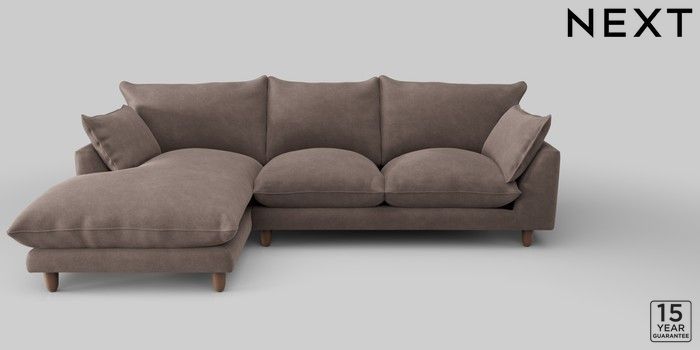 6.12.1 Buy Noa Deep Relaxed Sit Medium Sofa Chaise - Left Hand Luxe Chenille Mink Brown High Leg - Mid from the Next UK online shop Click here to use our accessible website