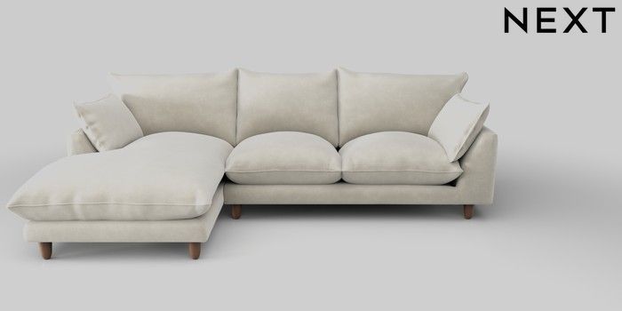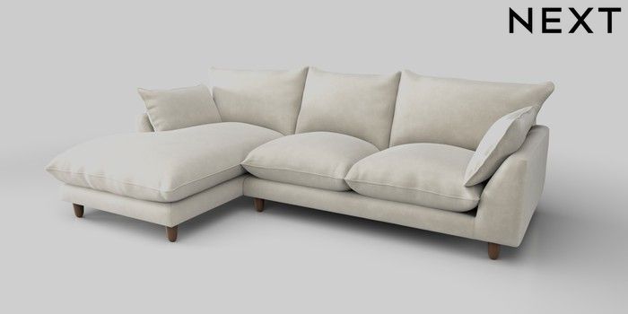 7.0.3 Buy Noa Deep Relaxed Sit Medium Sofa Chaise - Left Hand Luxe Chenille Oyster High Leg - Mid from the Next UK online shop Click here to use our accessible website