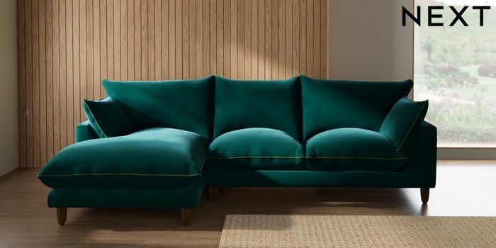 7.3.1 Buy Noa Deep Relaxed Sit Medium Sofa Chaise - Left Hand Plush Velvet with Contrast Juniper Grn with Mid Olive Grn High Leg - Mid from the Next UK online shop Click here to use our accessible website