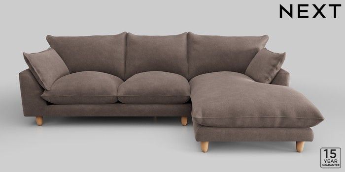 6.12.1 Buy Noa Deep Relaxed Sit Medium Sofa Chaise - Right Hand Luxe Chenille Mink Brown High Leg - Light from the Next UK online shop Click here to use our accessible website