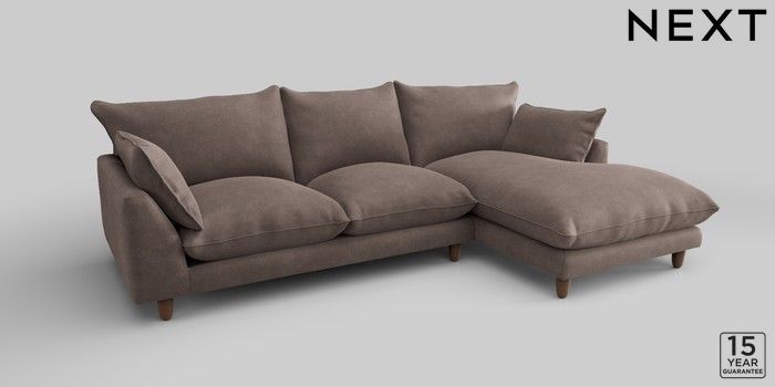 6.12.1 Buy Noa Deep Relaxed Sit Medium Sofa Chaise - Right Hand Luxe Chenille Mink Brown High Leg - Mid from the Next UK online shop Click here to use our accessible website