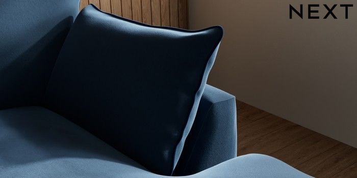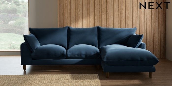 7.3.1 Buy Noa Deep Relaxed Sit Medium Sofa Chaise - Right Hand Plush Velvet with Contrast Airforce Blue with Navy Blue High Leg - Mid from the Next UK online shop Click here to use our accessible website