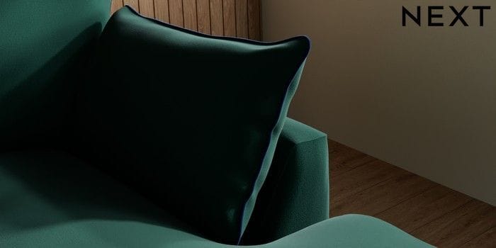 7.3.1 Buy Noa Deep Relaxed Sit Medium Sofa Chaise - Right Hand Plush Velvet with Contrast Bottle Green with Navy Blue High Leg - Dark from the Next UK online shop Click here to use our accessible website