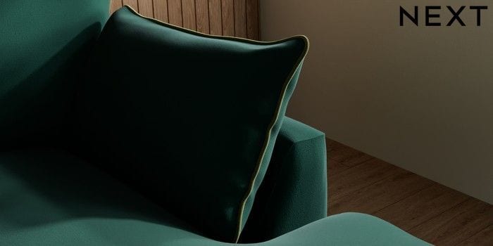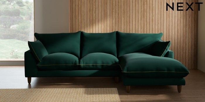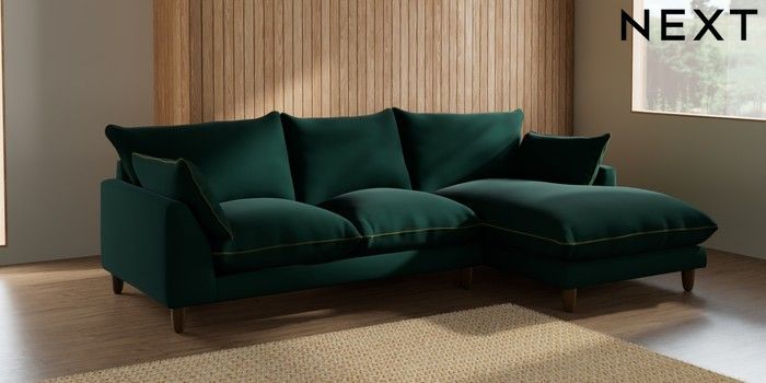 7.3.1 Buy Noa Deep Relaxed Sit Medium Sofa Chaise - Right Hand Plush Velvet with Contrast Bottle Grn with Mid Olive Grn High Leg - Mid from the Next UK online shop Click here to use our accessible website