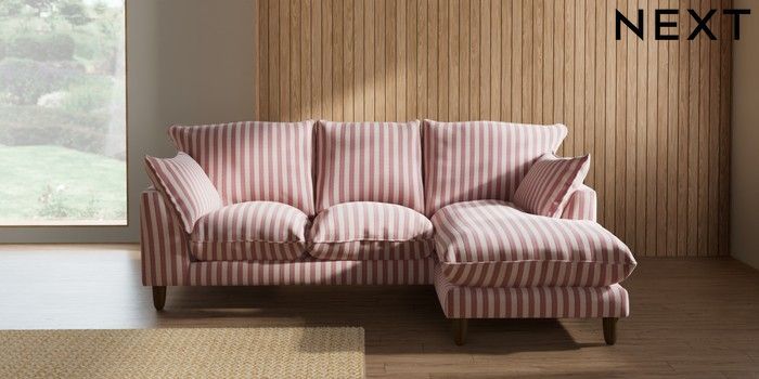 7.3.1 Buy Noa Deep Relaxed Sit Small Sofa Chaise - Universal Bold Chenille Stripe Dark Pink High Leg - Mid from the Next UK online shop