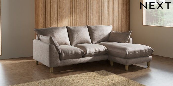 7.2.6 Buy Noa Deep Relaxed Sit Small Sofa Chaise - Universal Boucle Chenille Light Natural High Leg - Light from the Next UK online shop Click here to use our accessible website