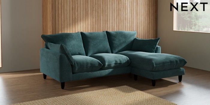 7.2.6 Buy Noa Deep Relaxed Sit Small Sofa Chaise - Universal Chunky Chenille Mid Teal Green High Leg - Dark from the Next UK online shop Click here to use our accessible website