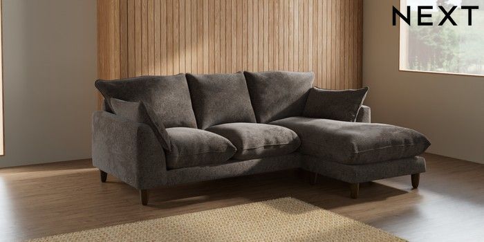 7.2.6 Buy Noa Deep Relaxed Sit Small Sofa Chaise - Universal Chunky Chenille Mink Brown High Leg - Mid from the Next UK online shop Click here to use our accessible website