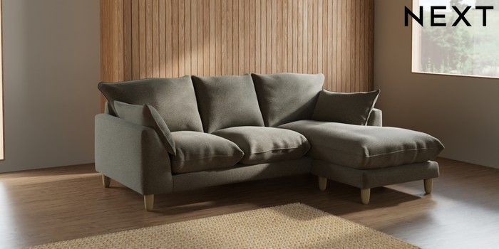 7.2.6 Buy Noa Deep Relaxed Sit Small Sofa Chaise - Universal Chunky Marl Light Olive Green High Leg - Light from the Next UK online shop Click here to use our accessible website