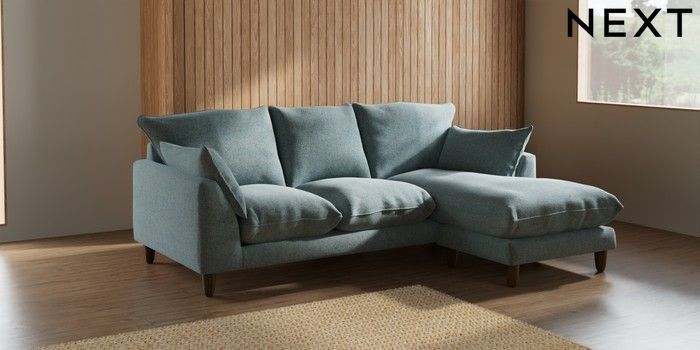7.2.6 Buy Noa Deep Relaxed Sit Small Sofa Chaise - Universal Chunky Marl Mid Blue High Leg - Mid from the Next UK online shop Click here to use our accessible website