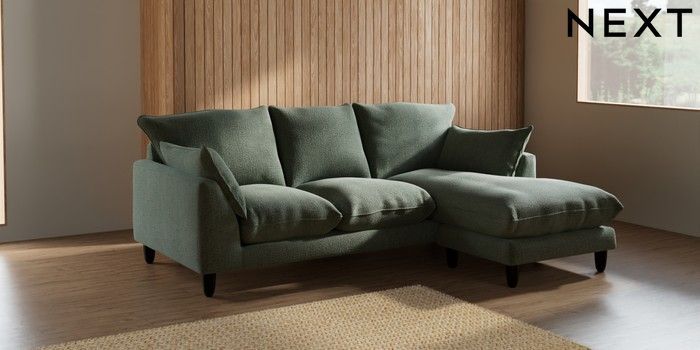 7.2.6 Buy Noa Deep Relaxed Sit Small Sofa Chaise - Universal Chunky Texture Mid Forest Green High Leg - Dark from the Next UK online shop Click here to use our accessible website
