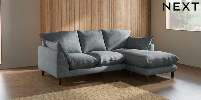 7.2.6 Buy Noa Deep Relaxed Sit Small Sofa Chaise - Universal Chunky Weave Mid Blue High Leg - Mid from the Next UK online shop Click here to use our accessible website