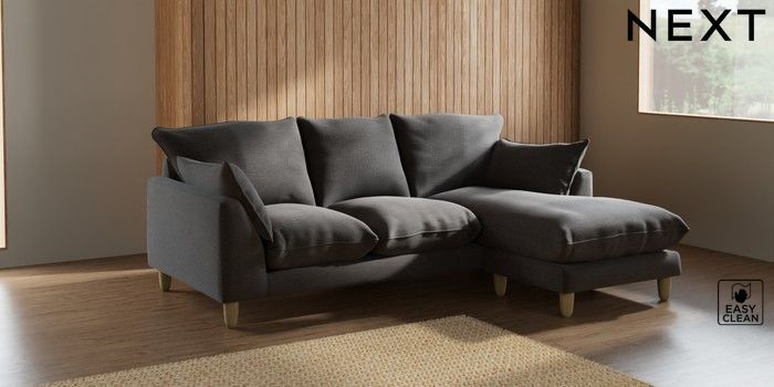7.2.6 Buy Noa Deep Relaxed Sit Small Sofa Chaise - Universal Fine Chenille Easy Clean Dark Smoke Grey High Leg - Light from the Next UK online shop Click here to use our accessible website