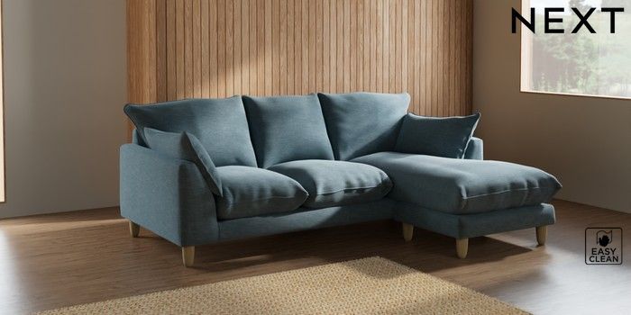 7.2.6 Buy Noa Deep Relaxed Sit Small Sofa Chaise - Universal Fine Chenille Easy Clean Mid Blue High Leg - Light from the Next UK online shop Click here to use our accessible website