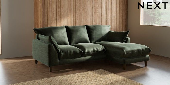 7.2.6 Buy Noa Deep Relaxed Sit Small Sofa Chaise - Universal Luxe Chenille Mid Green High Leg - Mid from the Next UK online shop Click here to use our accessible website