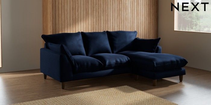 7.2.6 Buy Noa Deep Relaxed Sit Small Sofa Chaise - Universal Luxe Chenille Navy Blue High Leg - Mid from the Next UK online shop Click here to use our accessible website