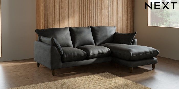 7.2.6 Buy Noa Deep Relaxed Sit Small Sofa Chaise - Universal Monza Faux Leather Easy Clean Dark Grey High Leg - Mid from the Next UK online shop Click here to use our accessible website