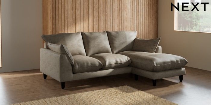 7.2.6 Buy Noa Deep Relaxed Sit Small Sofa Chaise - Universal Monza Faux Leather Easy Clean Mink Brown High Leg - Dark from the Next UK online shop Click here to use our accessible website