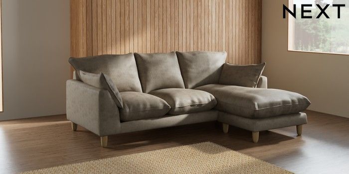 7.2.6 Buy Noa Deep Relaxed Sit Small Sofa Chaise - Universal Monza Faux Leather Easy Clean Mink Brown High Leg - Light from the Next UK online shop Click here to use our accessible website
