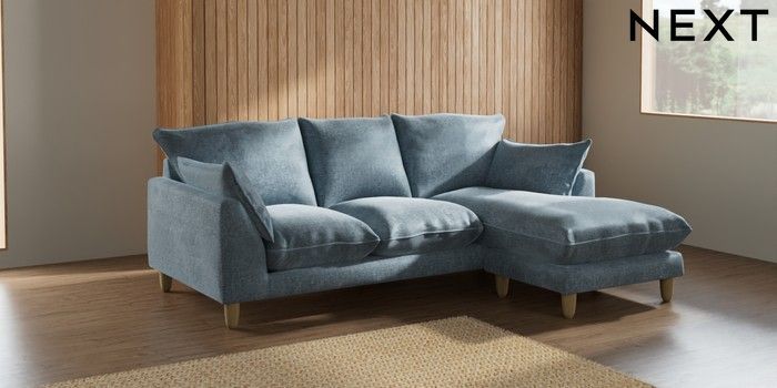 7.2.6 Buy Noa Deep Relaxed Sit Small Sofa Chaise - Universal Plush Chenille Light Blue High Leg - Light from the Next UK online shop Click here to use our accessible website