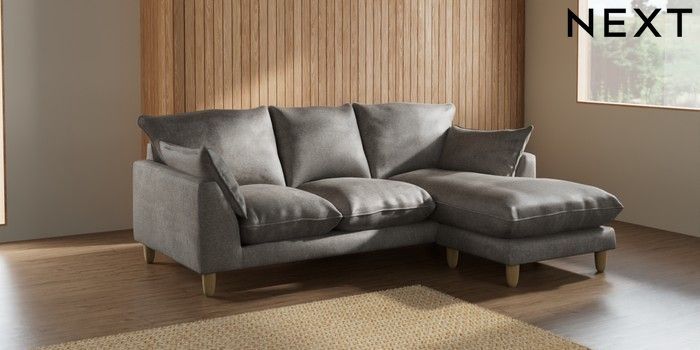 7.2.6 Buy Noa Deep Relaxed Sit Small Sofa Chaise - Universal Plush Chenille Light Grey High Leg - Light from the Next UK online shop Click here to use our accessible website