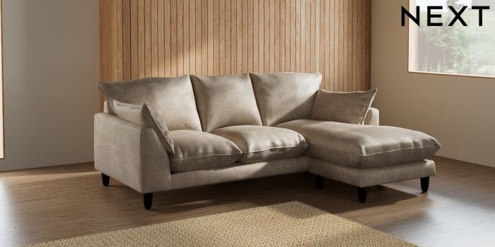 7.2.6 Buy Noa Deep Relaxed Sit Small Sofa Chaise - Universal Plush Chenille Light Natural High Leg - Dark from the Next UK online shop Click here to use our accessible website