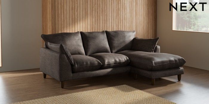 7.2.6 Buy Noa Deep Relaxed Sit Small Sofa Chaise - Universal Plush Chenille Mink Brown High Leg - Mid from the Next UK online shop Click here to use our accessible website