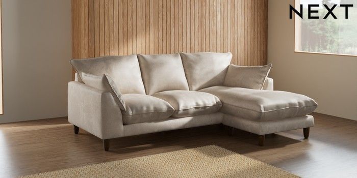 7.2.6 Buy Noa Deep Relaxed Sit Small Sofa Chaise - Universal Plush Chenille Oyster High Leg - Mid from the Next UK online shop Click here to use our accessible website