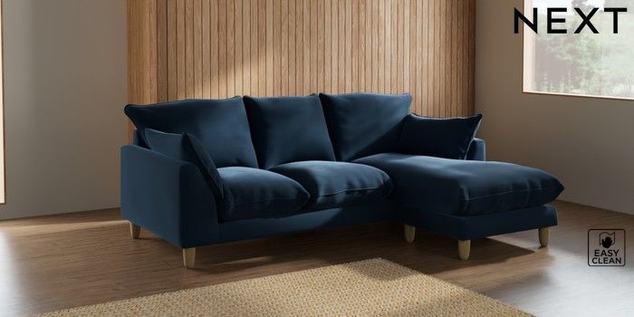 7.2.6 Buy Noa Deep Relaxed Sit Small Sofa Chaise - Universal Plush Velvet Easy Clean Airforce Blue High Leg - Light from the Next UK online shop Click here to use our accessible website