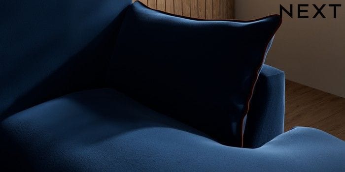 7.3.1 Buy Noa Deep Relaxed Sit Small Sofa Chaise - Universal Plush Velvet with Contrast Navy Blue with Ginger Orange High Leg - Light from the Next UK online shop Click here to use our accessible website