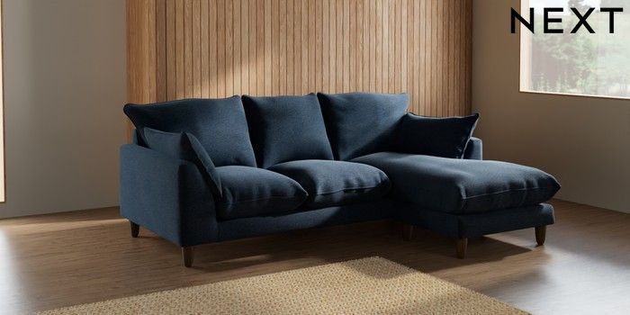 7.2.6 Buy Noa Deep Relaxed Sit Small Sofa Chaise - Universal Ripple Chenille Dark Blue High Leg - Mid from the Next UK online shop Click here to use our accessible website