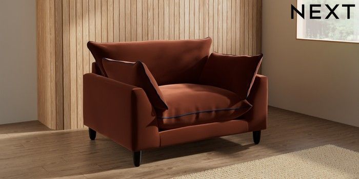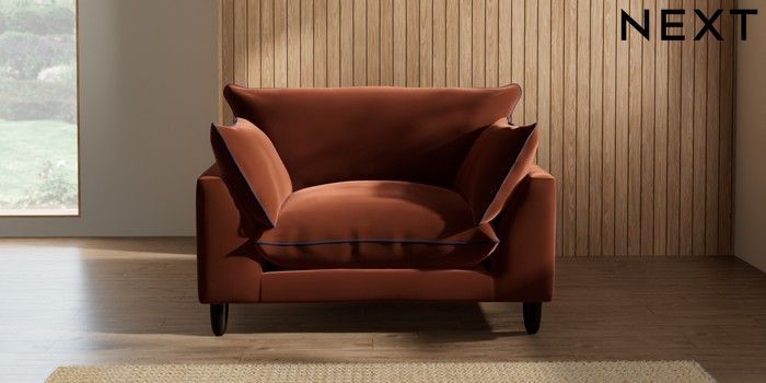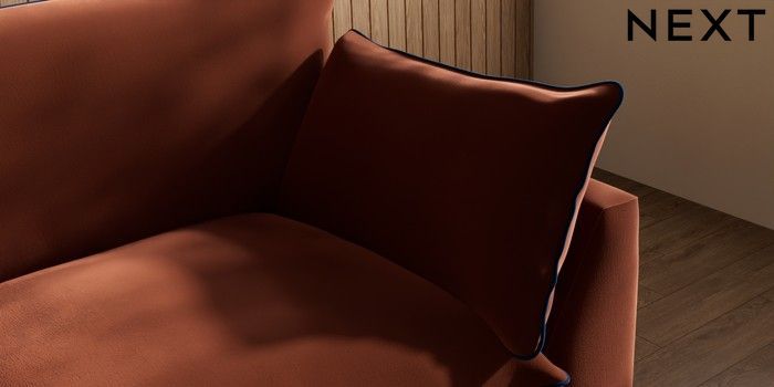 7.3.1 Buy Noa Deep Relaxed Sit Snuggle Plush Velvet with Contrast Ginger Orange with Navy Blue High Leg - Dark from the Next UK online shop Click here to use our accessible website