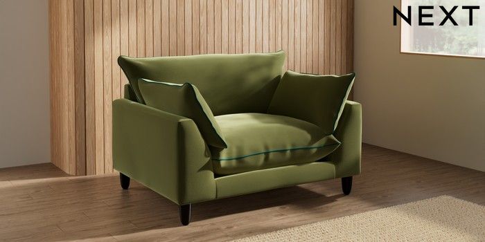 7.3.1 Buy Noa Deep Relaxed Sit Snuggle Plush Velvet with Contrast Mid Olive Grn with Juniper Grn High Leg - Dark from the Next UK online shop Click here to use our accessible website